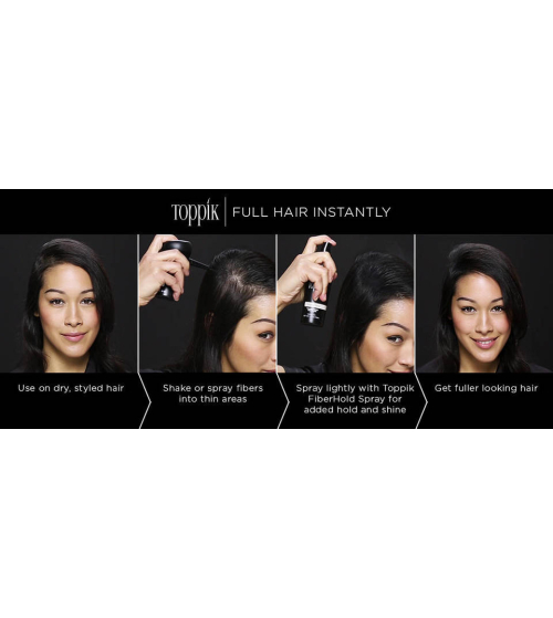 Der Effekt, den Sie mit Toppik erzielen, ist sensationell: Die in Toppik enthaltenen winzigen Mikrofasern, die genau wie Ihr Haar aus dem organischen Protein Keratin bestehen, passen sich Ihrem Eigenhaar optimal an. Innerhalb weniger Sekunden erzielen Sie so sichtbar mehr Haarvolumen und dünne Stellen verschwinden genauso spurlos wie Ihre Haarprobleme.
